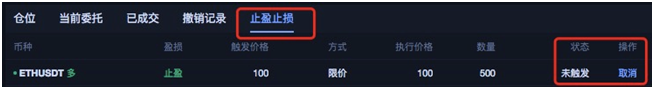 (2) 在已经挂止盈止损的状态下,止盈或止损部分成交,另一侧去掉相应的数量,顺序:先从自由状态中减去,再从止盈止损中减去。