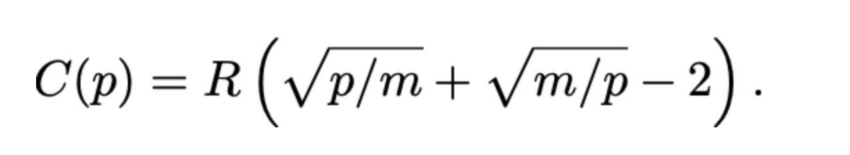 (关于推导,见论文附录E部分),如果我们假设 p ≥ (1+ε)m且ε>0.那么由于 C(p)在p中(p>m)是增加的,我们得到的成本至少是: