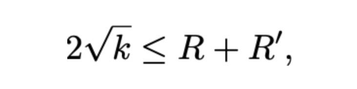 要证明没有交易能耗尽Uniswap的币,这是不难的。 由于k = R’R,那么,通过AM-GM不等式(均值不等式)我们得到: