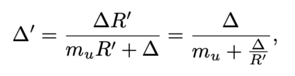 对于固定边际价格mᵤ,它在R'中增加(注意分母随着R'的增加而减少)。因此,可用储量越高,给定输入量的输出量就越大。这对于很多使用Uniswap协议的用户来说是很直观的,在更多流动性池的情况下,他们看到的滑动是较小的。
