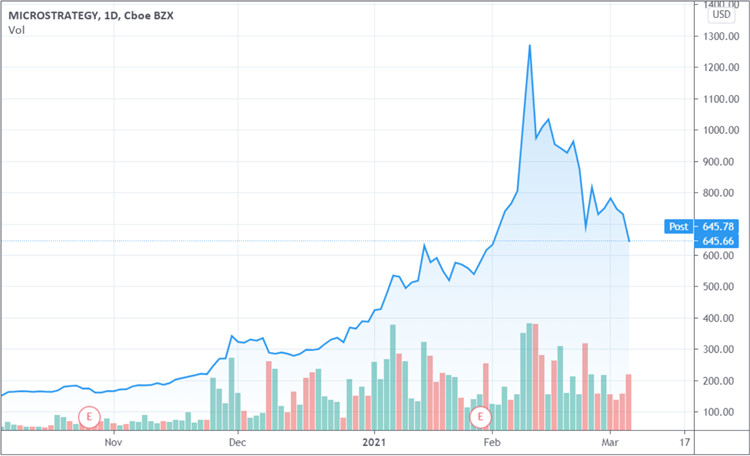 去年十一月开始,比特币从13,800美元开始上涨,到今年一月,比特币最高价格来到了58,367美元,涨幅高达322%;而MSTR的价格也从168美元一路至1,315美元,涨幅高达682% 。