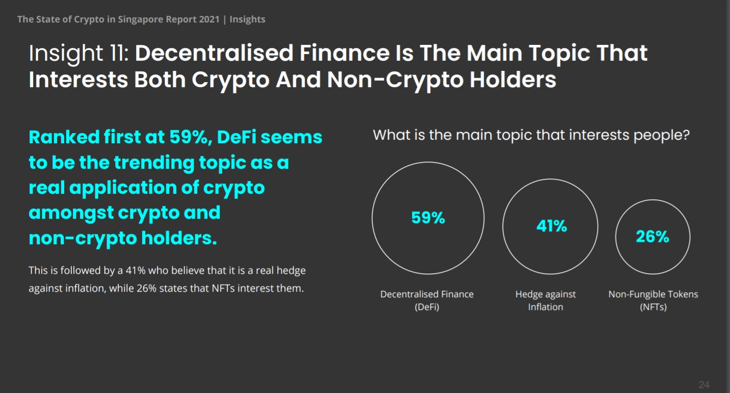 这项联合报告于6月29日至7月9日向4,348名新加坡成年人进行数字资产投资调查。调查结果显示,在拥有个人投资的受访者中,67%的人持有加密货币,其中3分之2的持币者表示在COVID-19疫情大流行期间增加了数字资产持仓量。