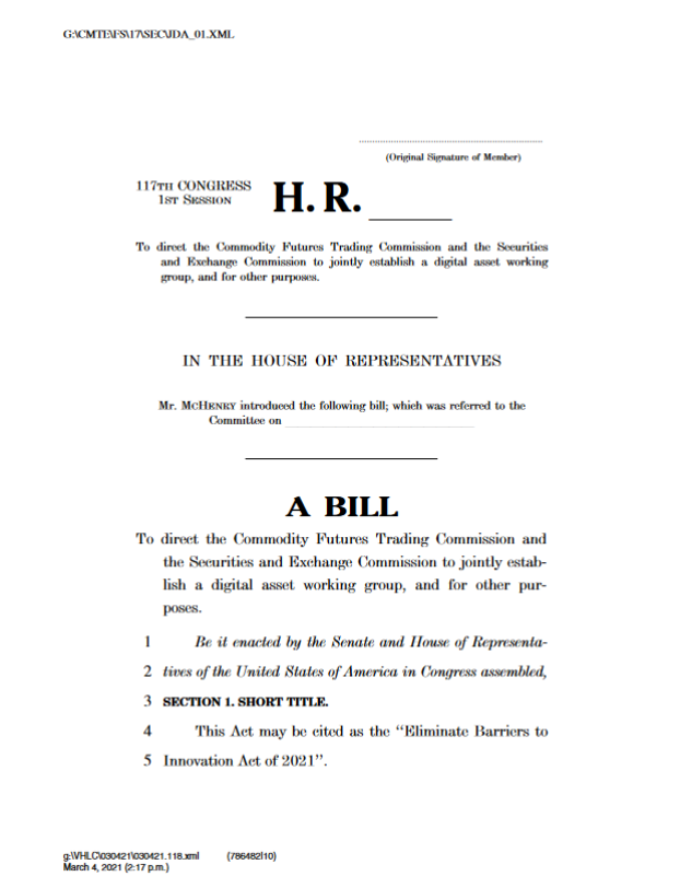 该条款由派崔克·麦克亨利(Patrick McHenry)提出,旨在解决美国法规对数位资产缺乏明确定义的困境,若参议院通过本案,则SEC(管证券)和CFTC(管商品)将必须针对加密货币符合哪些条件是证券,哪些又是商品建立明确的规范。